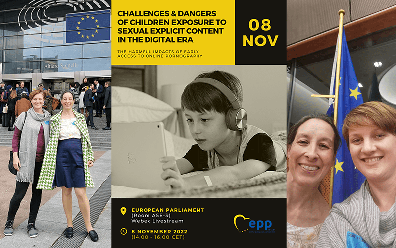 Zeitgleich organisierte FAFCE auch eine Konferenz im EU-Parlament am 8. November 2022 zum Thema Kinderschutz vor Pornografie in digitalen Zeiten. Gastgeber der Konferenz war Abgeordneter des EU-Parlaments François-Xavier Bellamy (EPP, France). Experten und NPOs aus ganz Europa waren dabei, um eine multidisziplinäre Auseinandersetzung mit dem Thema zu gewährleisten. Auch wir konnten Safersurfing vorstellen und von unseren Erfahrungen berichten.